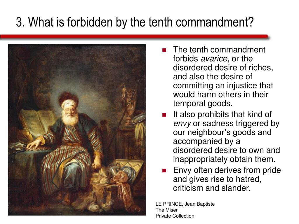 Coveting is a sin of the heart that leads to more serious sins when left unchecked. The later version of the Tenth Commandment begins with a prohibition against “coveting” a neighbor’s wife. The narrow wording might imply that the prohibited coveting is limited to a married woman who lives next door to you. But Jesus came to shatter these legalistic interpretations. He explained that the mere act of lusting after another who is not that person’s spouse (an act of coveting) is a form of adultery: “but I say to you that everyone who looks at a woman with lust for her has already committed adultery with her in his heart.” (Matt. 5:28). Coveting, like the other Ten Commandments, are sins of the heart that defile us: “For from within, out of the heart of men, proceed the evil thoughts, fornications, thefts, murders, adulteries, deeds of coveting and wickedness, as well as deceit, sensuality, envy, slander, pride and foolishness. All these evil things proceed from within and defile the man.” (Mk. 7:21-23). God prohibits lusting or coveting the things of the flesh because it leads to other more serious sins. Lusting after another, whether it be in person, through pornography, or soft porn on television or in magazines, can lead to more serious sins like fornication and adultery. Moreover, these lusts put you in communion with the father of the world, not your Father in heaven: “For all that is in the world, the lust of the flesh and the lust of the eyes and the boastful pride of life, is not from the Father, but is from the world.” (1 Jo. 2:16). Every believer is at times guilty of this sin (Rom. 3:20). Jesus and Paul analogized sin to yeast, the fastest growing microorganism (Mk. 8:15; 1 Cor. 5:7-8). If you are entertaining small sins of the flesh with your eyes, they will not stay small for long.